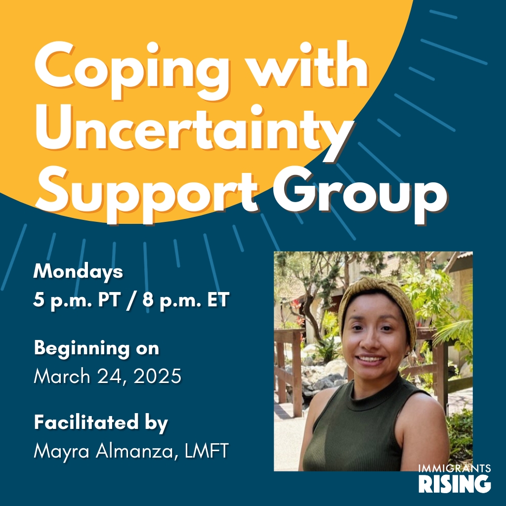 ‘WSG_Coping With Uncertainty_Almanza_March 2025’ Published March 4, 2025 at 1024 × 1024 in Registration Open: March 2025 Wellness Groups for Undocumented Communities by Immigrants Rising ‹ Back